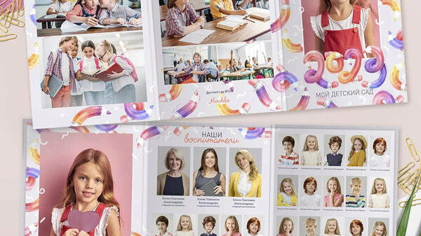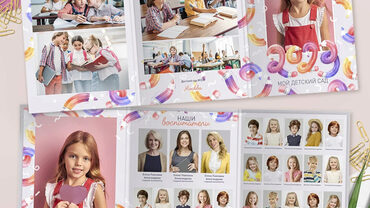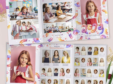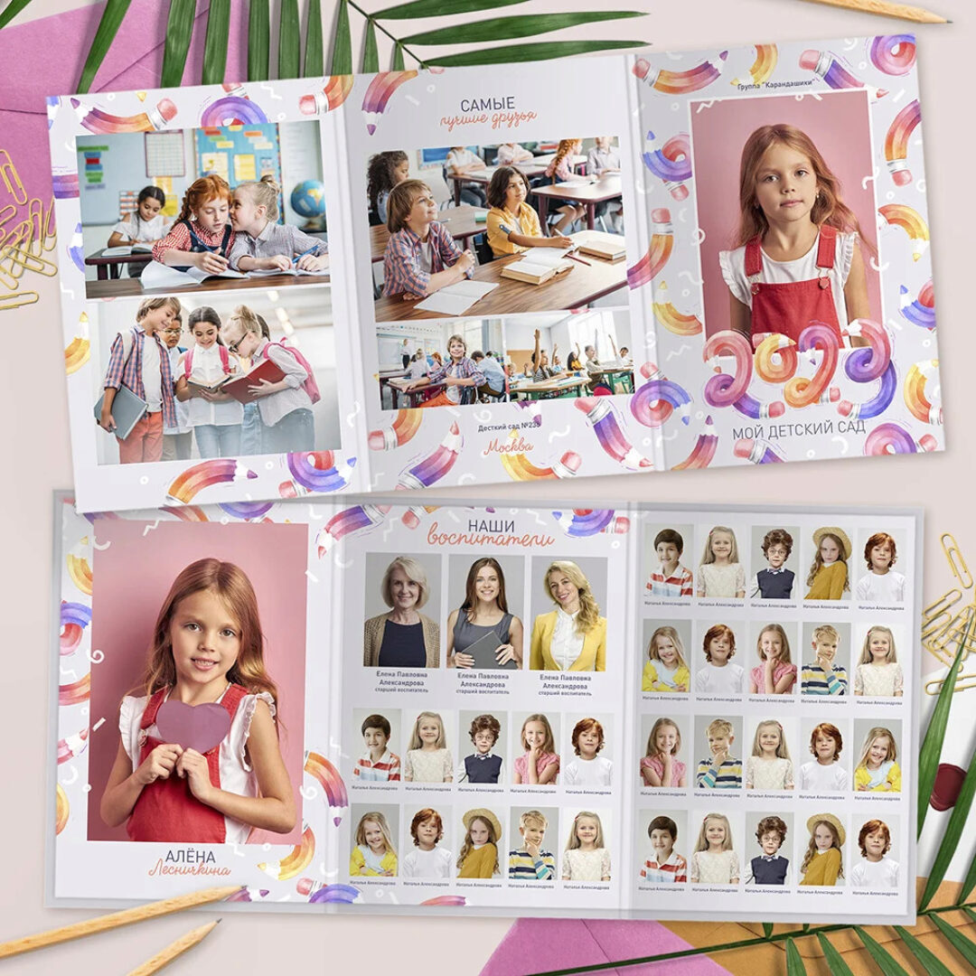 Дизайн «Рисунки». Трюмо. Подойдет и для детских садов и для младших школьников! В шаблон входят: цена указана за один формат три варианта обложки - общая и две индивидуальных год на обложке и другие надписи можно менять - они в шрифтах 6 разворотов, включая индивидуальный и виньетку расположение
