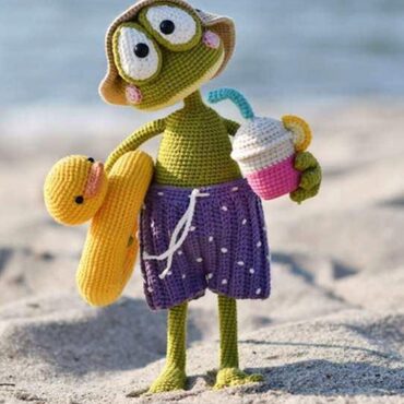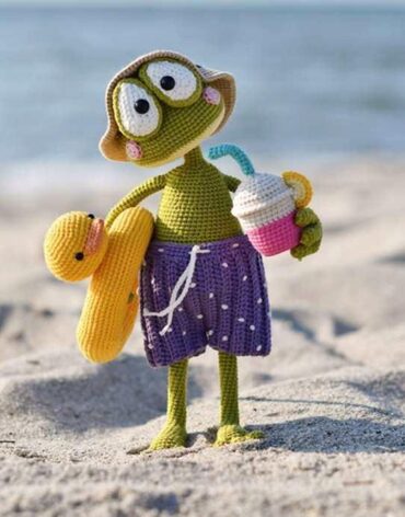 Лягушонок Хьюго, модный и харизматичный представитель земноводных, мастер огородных дел, практикует йогу, увлечён диптерологией (изучением мух и комаров). Любимый цвет зелёный. Высота около 18 см. из пряжи Yarn Art Jeans, крючком 2 мм. Связан крестиками (полукрестиками) Уровень вязания средний.