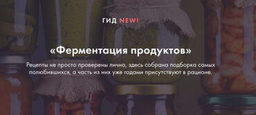 В ГИДе вы встретите не только рецепт всем полюбившейся маминой капусты, но и перцев, моркови, брокколи, свеклы, редиса, тыквы, цветной капусты, стручковой фасоли, кабачков и даже ревеня. Помимо этого представлены рецепты напитков — чайный гриб, водный кефир, ферментированные чаи.