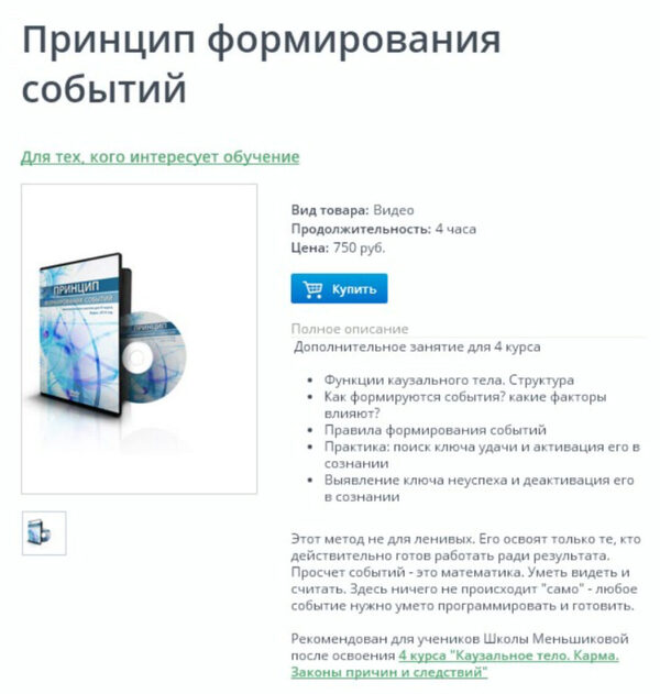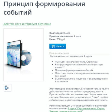 Отзывы о курсе «4 курс. Принцип формирования событий» от Ксении Меньшиковой