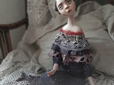 В своих работах я использую, в основном, натуральные ткани, они хорошо тонируются, мнутся, рвутся и мажутся, мои куклы все немного винтажные.