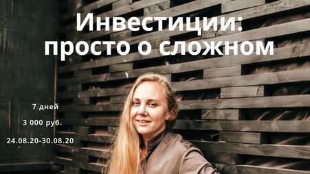 Вы получите: 20 уроков, длительность каждого урока 1,5-2 часа Подойдет для: людей работающих в найме для предпринимателей для заботливых мам На курсе Вы узнаете: - Главные правила успешного инвестора (мифы и страхи в инвестировании) - Базовые понятия и механики (участники фондового рынка) - Как