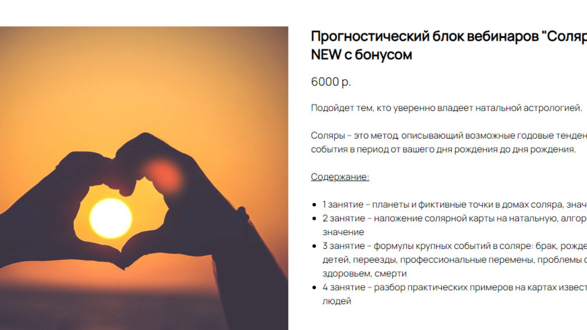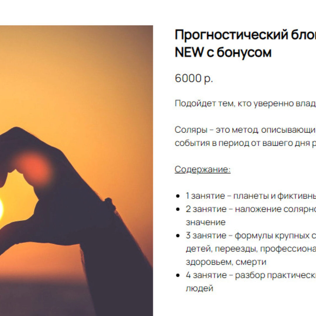 По итогу вы получите полный алгоритм анализа соляра с интересными, неизвестными большинству, нюансами и способами. Сможете видеть в Солярах крупные события и планировать свои сценарии жизни наперед.