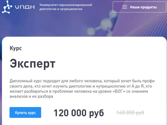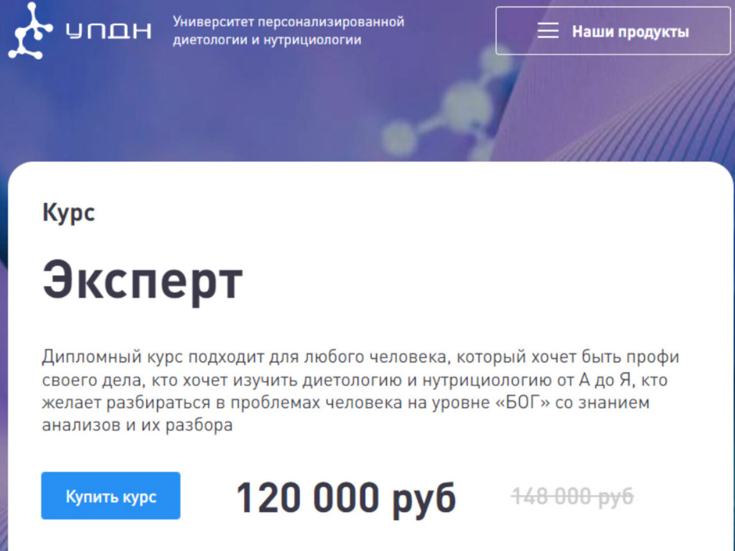 Ксения Пустовая Дистанционный курс обучения диетолога «Эксперт» 2022 — УПДН