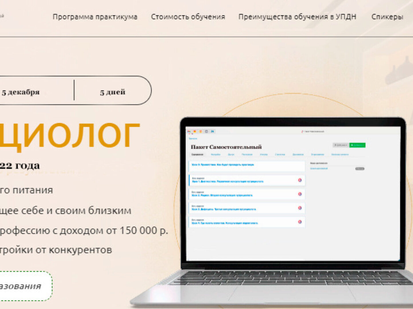 Профессиональный онлайн-практикум Я-НУТРИЦИОЛОГ Как стать востребованным специалистом с нуля и выйти на доход от 150 000+ в месяц 5 практических шагов к здоровой и счастливой жизни Для кого этот практикум? Для врачей и специалистов нетрадиционной медицины Вы хотите повысить квалификацию, внедрить
