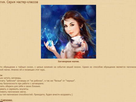 Обучающий курс, посвящённый созданию таких магических артефактов, как талисманы, обереги и подклады. В него входят следующие темы: • Обереги природного происхождения (растения, камни и металлы, обладающие защитными свойствами). • Магические обереги (что они из себя представляют и с какой целью их