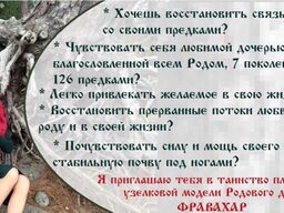 - Соединитесь со своим родом, его силой и потенциалом, даже не зная по Имени всех предков! Плетение устроено таким образом, что вы знакомитесь с каждым из них, получая благословения во все сферы жизни от КАЖДОГО(!) предка!