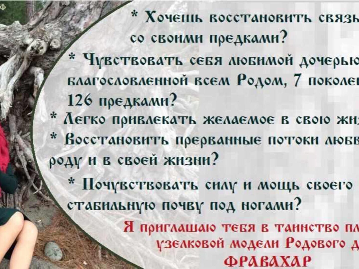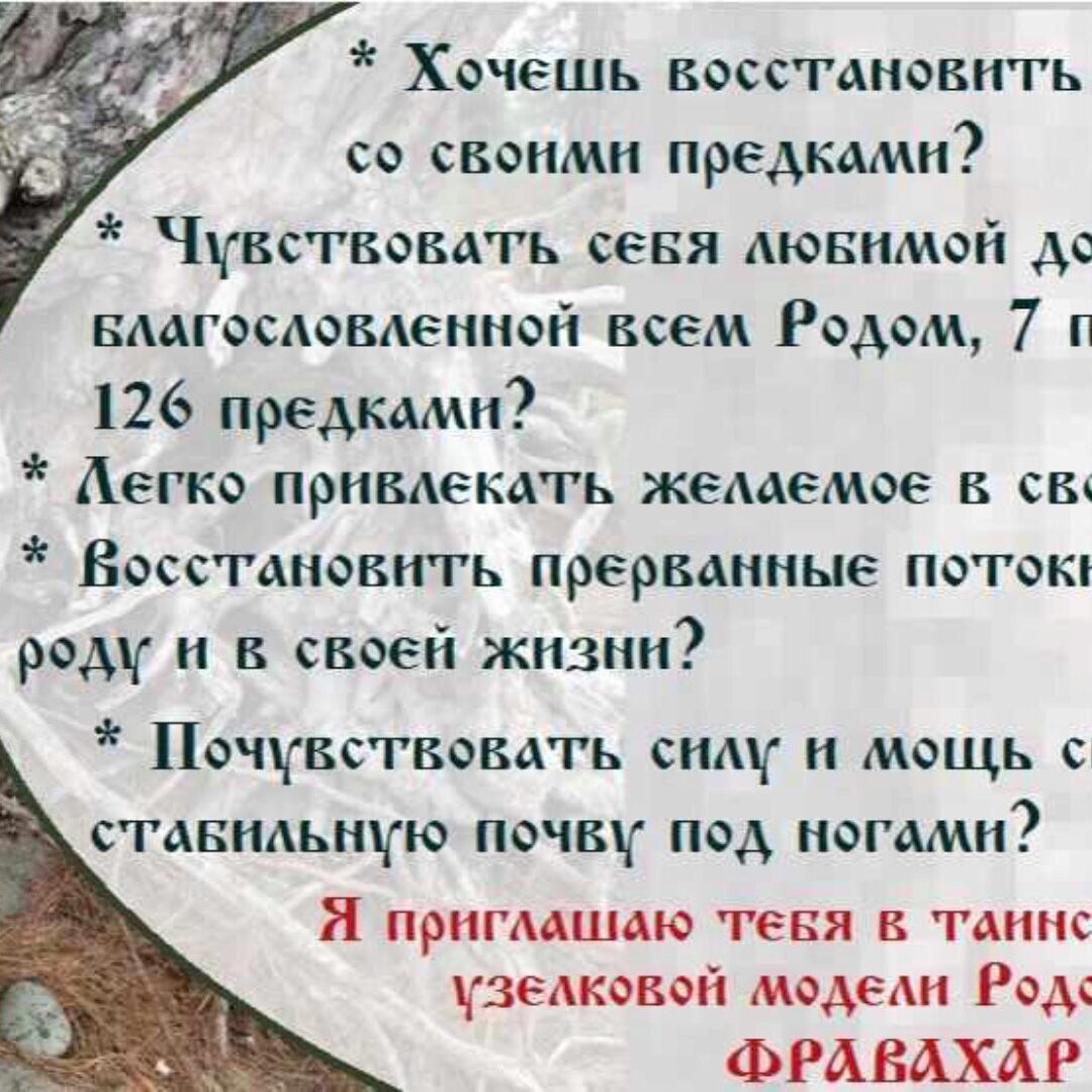 Если Вы хотите соединиться с родом, войти в Силу Вашего Рода, открыть новый ресурс, укорениться и соединиться с материальным миром, узнать о родовом творчестве и родовых ценностях, приглашаю Вас онлайн Ритуал Плетения Фравахар.