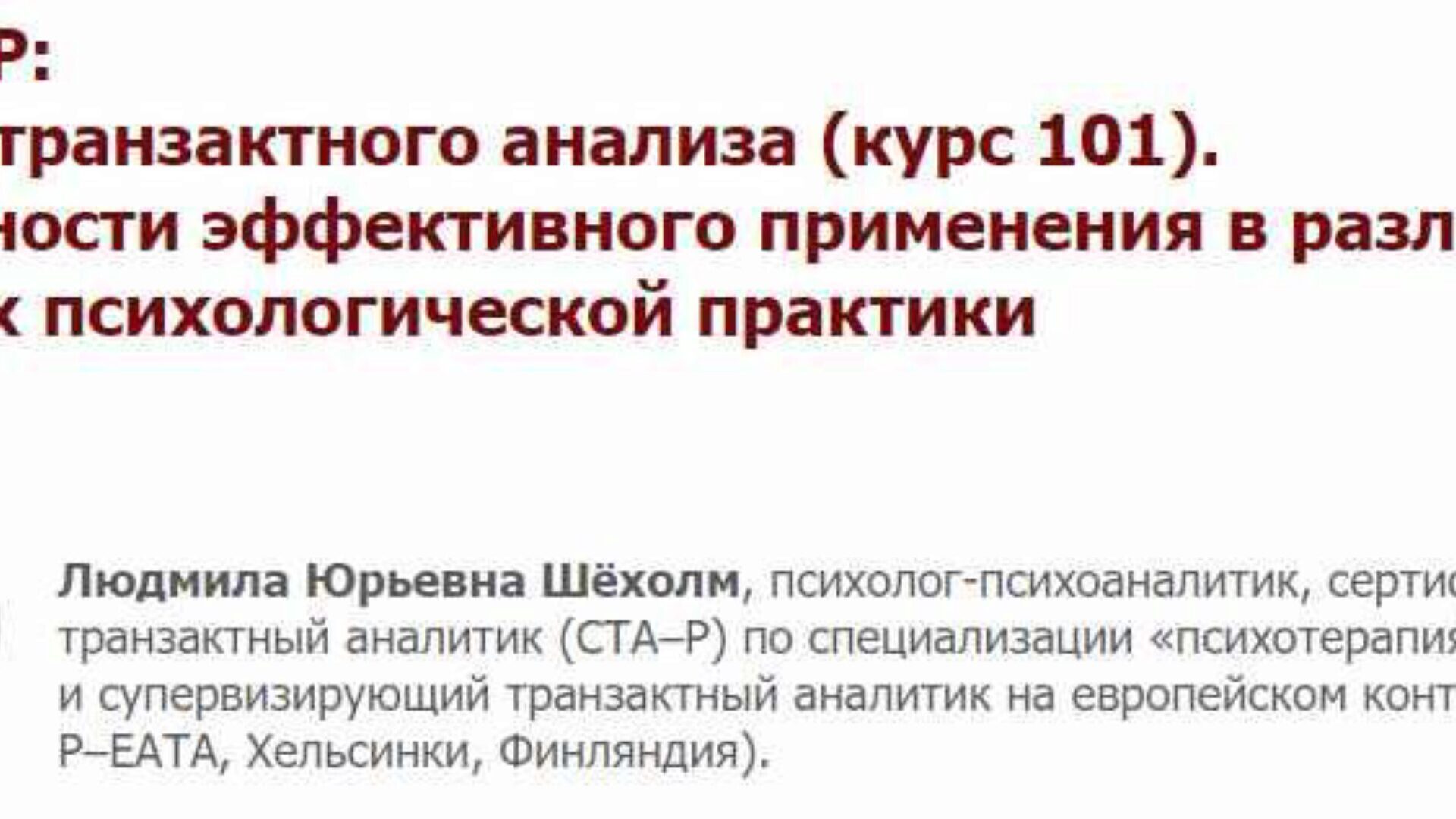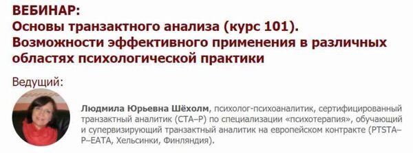 Отзывы о курсе «Основы транзактного анализа» от Людмилы Шёхолм