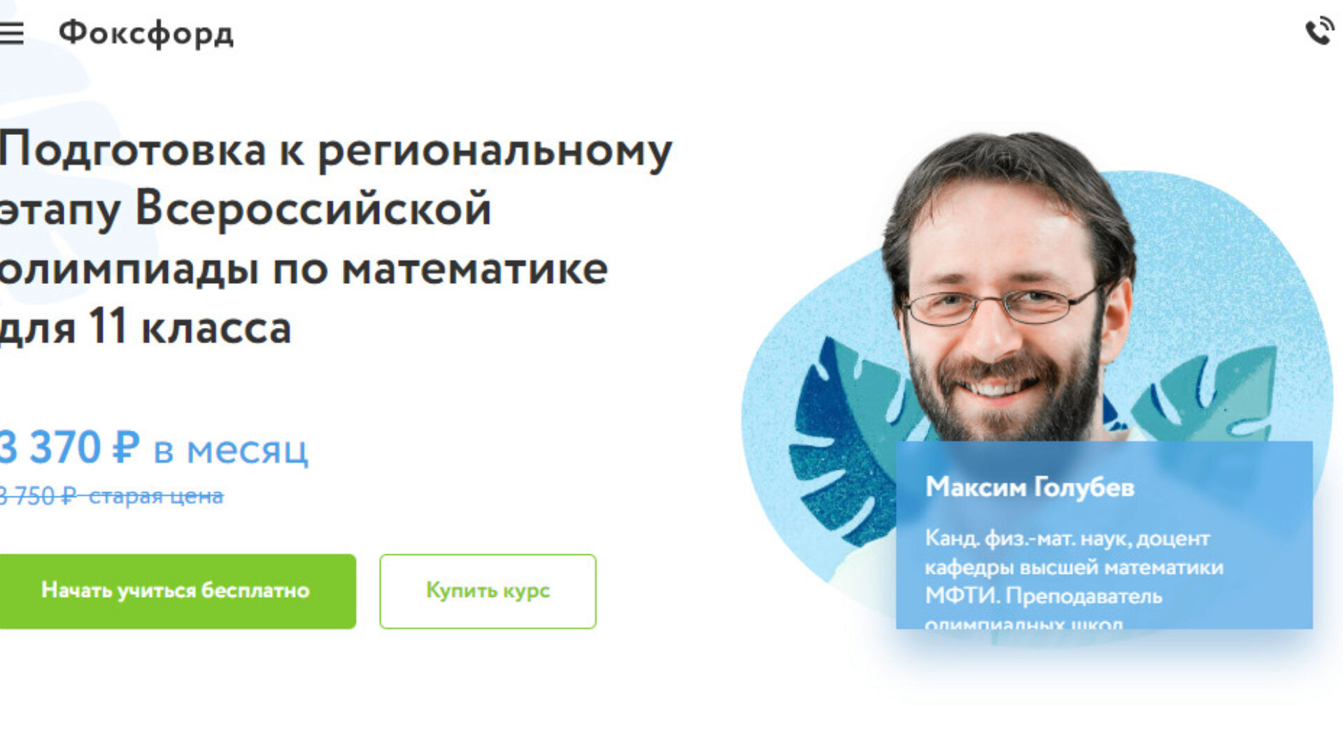 Курс подготовки к этапу Всероссийской олимпиады по математике для 10-11 классов [Фоксфорд]