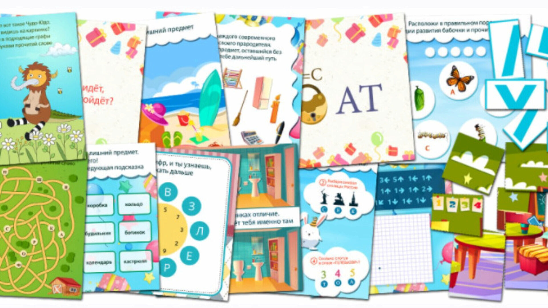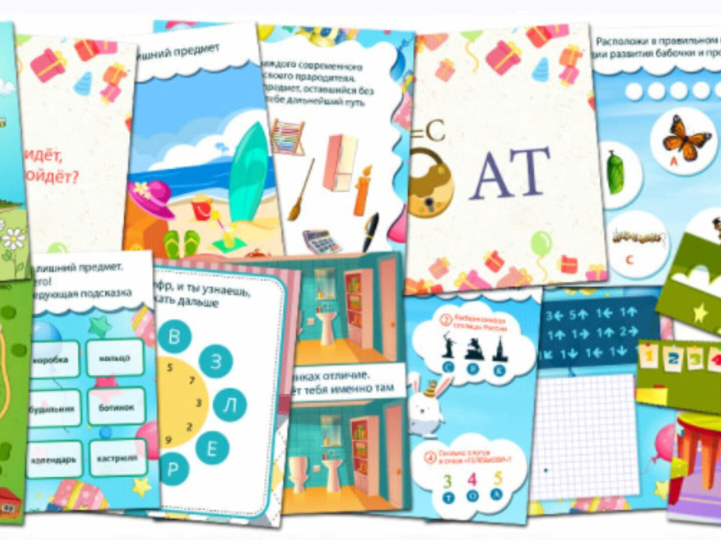 Квест на День рождения для детей 8, 9, 10 лет — готовый набор красочно оформленных заданий с универсальным дешифратором, благодаря которому вы сможете организовать увлекательный праздничный квест на День рождения ребёнка с поиском спрятанного подарка в любом месте — в помещении (в квартире, в