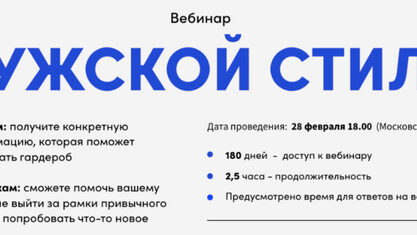 9 модулей: 1. Внешность мужчины и первое впечатление 2. Цвет в одежде 3. Подходящие фасоны (Фигура) 4. Аксессуары 5. Деловая одежда и дресс-код 6. Базовый гардероб 7. Проведение личной консультации для мужчины 8.Разбор гардероба 9. Рациональный шоппинг Спойлер Содержание курса: 1 урок - Мужской