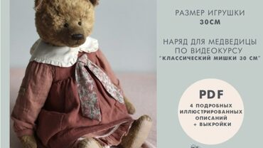 Мастер Класс по созданию мишки Тедди (размером около 16 см), с подробной инструкцией на русском и на английском языках, c выкройкой, в формате PDF. Для работы Вам понадобятся инструменты (ножницы, шило, иглы, палочка для набивки, пинцет медицинский и т.д.). Материалы (вискоза, древесные опилки,