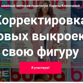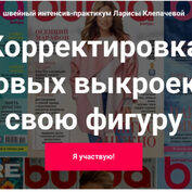 Блок 1 «Секреты корректировки готовых выкроек плечевых изделий» Блок 2 «Секреты корректировки готовых выкроек брюк» Хотите получить проверенную методику корректировки готовых выкроек на любую нестандартную фигуру? Приглашаю стать участником нового швейного интенсива Что вам даст участие в