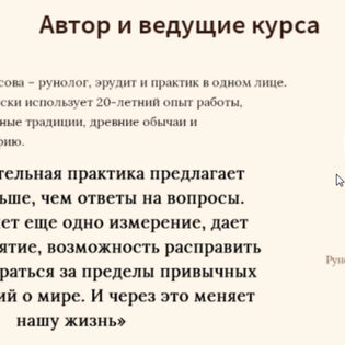 Для изучения тем, которые выходят за рамки программы рунических курсов: «Руническая магия и мантика для начинающих» и «Руническая магия и мантика для продолжающих» маг и рунолог Лариса Кузнецова-Фетисова проводит мастер-класс, который состоит из теоретической и практической части для участников любого уровня подготовки.