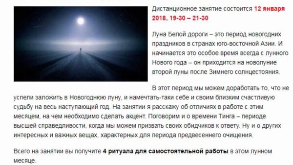 Новый авторский цикл занятий «Колесо Новолуний» от Кузнецовой-Фетисовой Ларисы – это максимально практический курс по новолуниям года, включающий в себя подробный рассказ о каждом из лунных месяцев года. Цикл состоит из серии ежемесячных коротких занятий, на каждом из которых участники узнают об