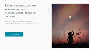 Вебинар эмоционально-образного терапевта, травматерапевта, канд. психол. наук Ларисы Овчаренко Эмоционально-образная терапия – направление психотерапии, которое позволяет достичь весьма быстрых и ценных результатов при коррекции тех или иных эмоциональных нарушений. Чувства, которые испытывает