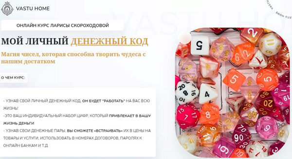 Васту поможет тебе создать в своем доме «денежное пространство» и сделать его настоящим магнитом для денег. Достижение богатства – одна из самых больших тайн жизни. На курсе ты откроешь эту «денежную тайну» с помощью древней ведической науки о гармоничном строительстве и дизайне – Васту. Этот курс