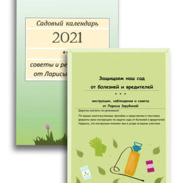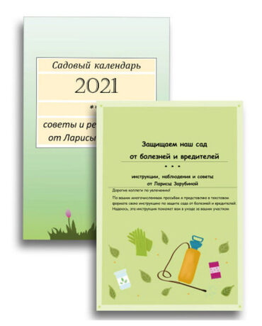 Дорогие друзья, вы можете приобрести комплект, в который входят Календарь основных работ в саду и Инструкция по обработке сада от болезней и вредителей по очень выгодной цене! Информация в календаре и инструкции прекрасно дополняют друг друга! Оба издания предоставляются в электронном виде, вы можете пользоваться для чтения любым электронным устройством или распечатать на бумаге.