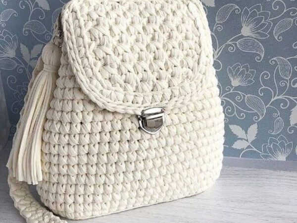 Подробный мастер класс по вязанию крючком плюшевого рюкзака Кота. МК состоит из фото-шагов каждого момента. Схемы и описания есть на все части рюкзака и детали. Пошив подклада в данный мк не входит