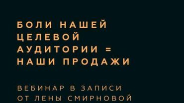 16 марта Лена Смирнова впервые расскажет все о болях аудитории, о том, как их определить, транслировать, а главное, донести до зрителя вариант решения их проблем и обеспечить себе продажи!