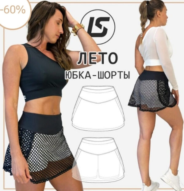 Описание модели: Юбка-шорты в едином размере, подойдёт от 40 до 50, регулировать размер вы можете за счет резинки в поясе. идеально садятся на любую попу Также можно пошить по данному лекалу юбку-брюки .