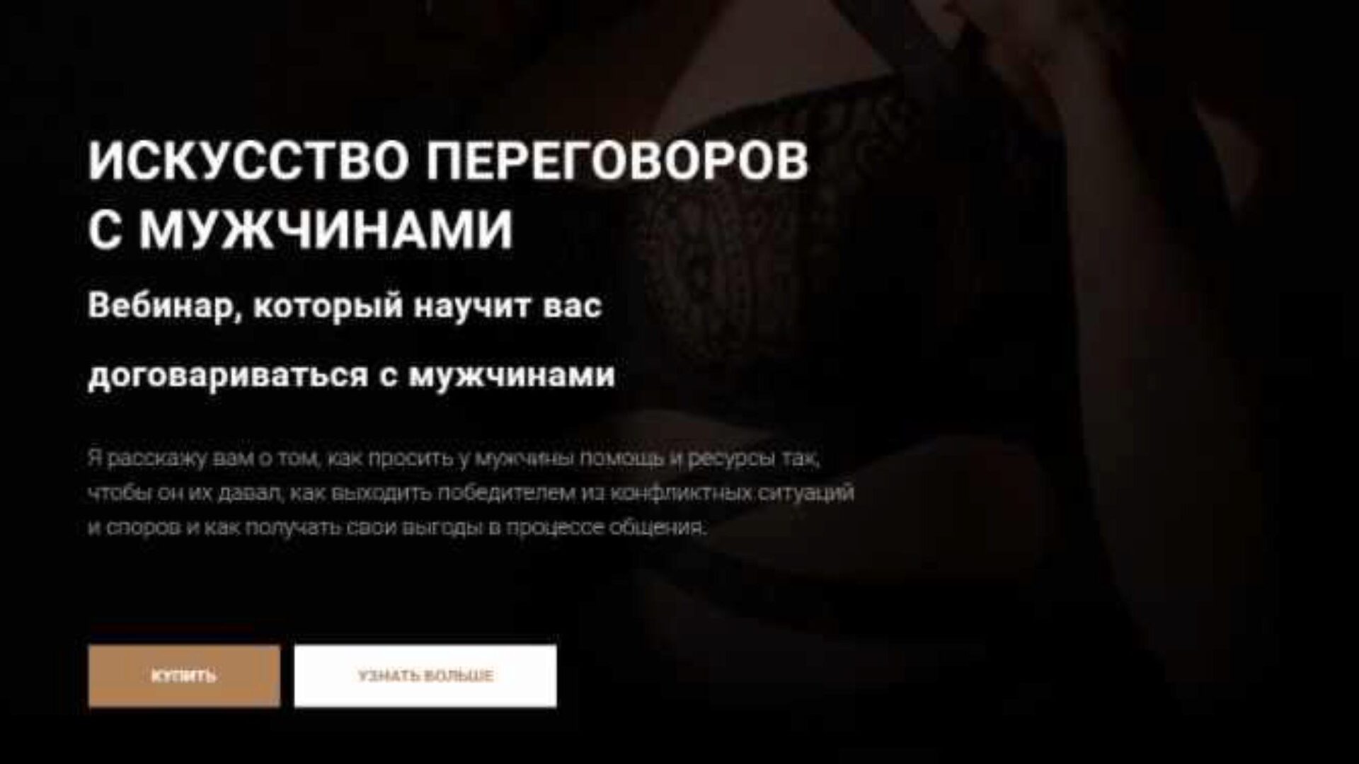 3-х часовой вебинар Семинар состоит из двух основных блоков: Психология Что на самом деле цепляет мужчин? Как разговаривать с мужчинами? Насколько важны сексуальные техники и когда имеет смысл их использовать? Как взрывать мужчине мозг? Как контролировать его желания? Язык тела. Тантрические
