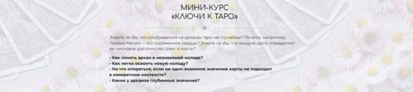 В дополнение к нему идет чек-лист «Ключи к таро»и обратная связь: если возникнут вопросы по курсу, то Вы можете написать мне лично и я с радостью отвечу.