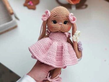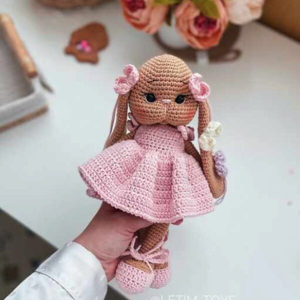 Рост готовой игрушки ~25 см, самостоятельно не стоит, сидит с поддержкой (пришиваются только голова и ушки) МК в формате PDF, в него входит: 40 страниц подробного описания (зайка+комплект одежды крючком, вся одежда снимается) 73 фото процесса список используемых материалов