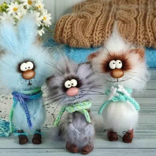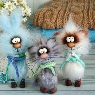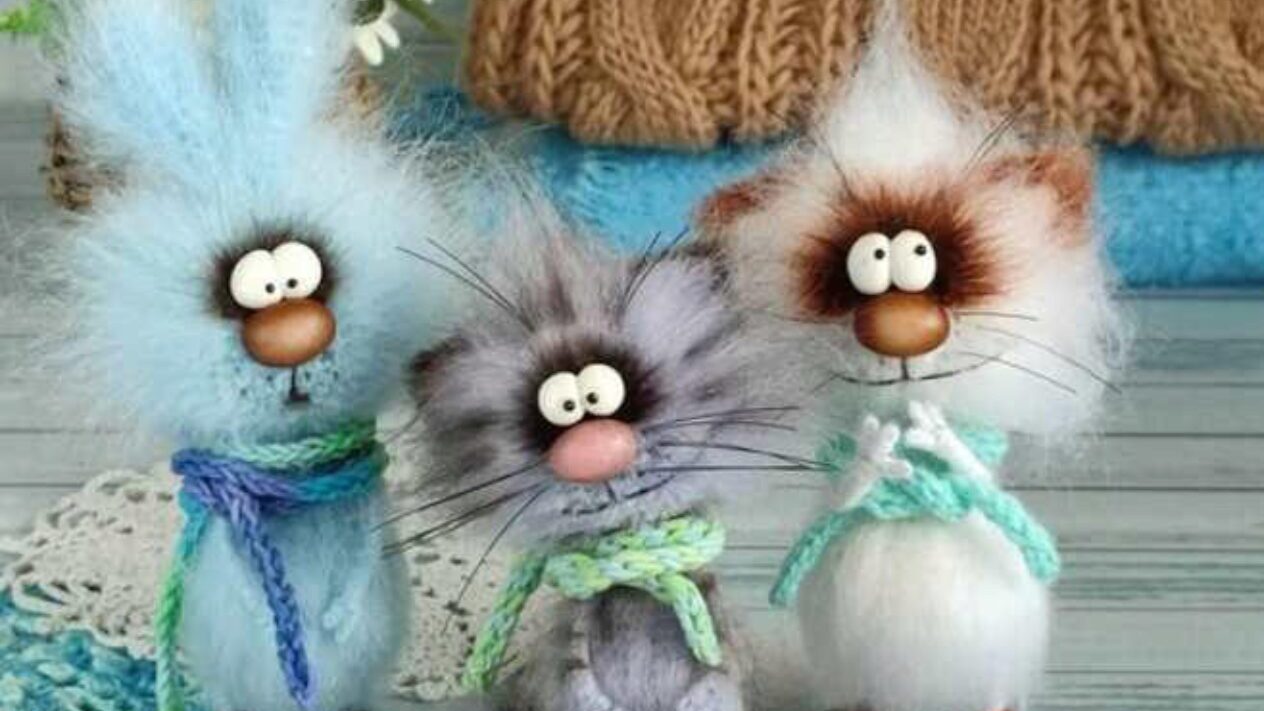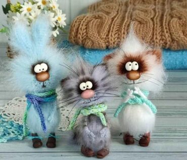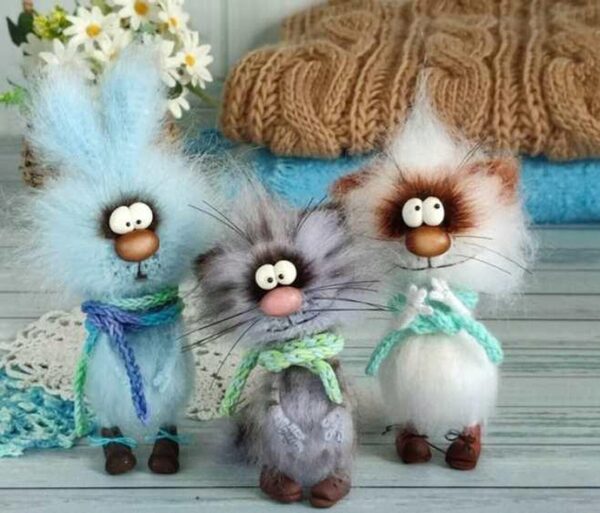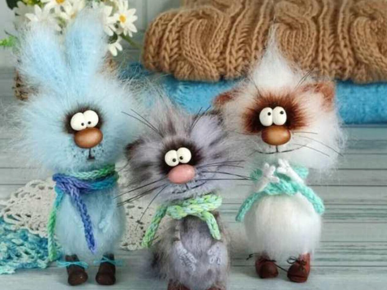 Каркасная игрушка в комбинированной технике из ангоры и мохера. Игрушка вяжется в 2 нити: ангора( Real 40/Angora Gold)+ Kid Royal- в тон основной нити. Для каркаса используется герберная(флористическая) проволока, диаметр 1,2-1,4 мм. Игрушка цельновязаная. Есть лепные детали из полимерной глины.