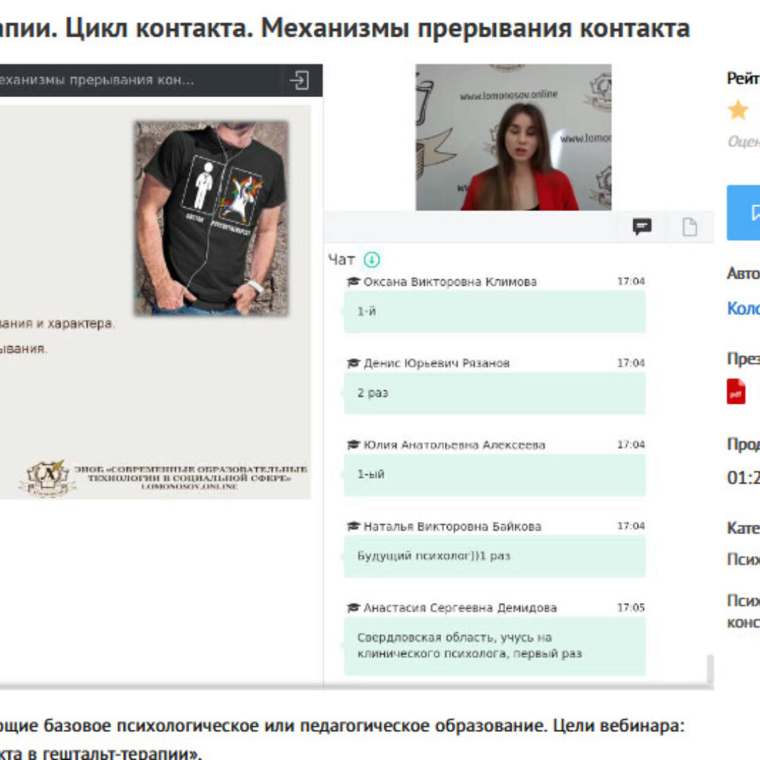 Отзывы о курсе Вебинары «Основы работы в гештальт-терапии. Цикл контакта. Механизмы прерывания контакта» от Лидии Коломейцевой