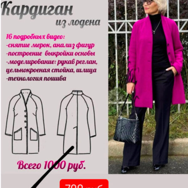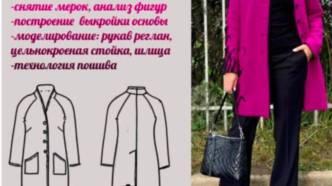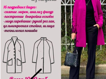 В Видеокурсе есть 6 подробных уроков по пальто: - как снять мерки - как построить выкройку пальто, - как смоделировать воротник - как подготовить ткань, крой - пошаговая обработка всех узлов... 2 урока по брюкам: - как построить выкройку - пошаговая обработка всех узлов