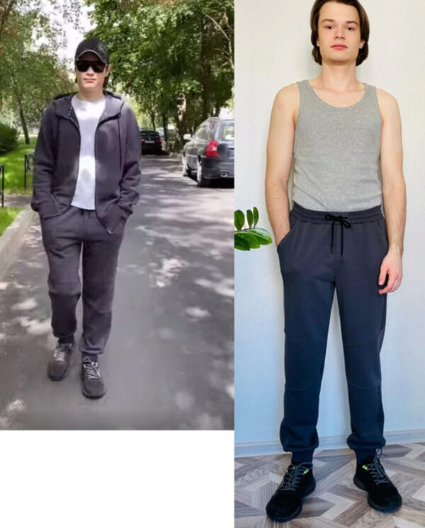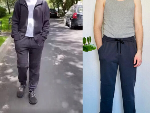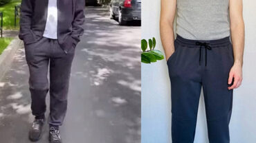 - Джоггеров умеренного объема на резинке, сзади кокетка, боковые карманы и декоративные подрезы на передней половине с использованием изнаночной стороны футера