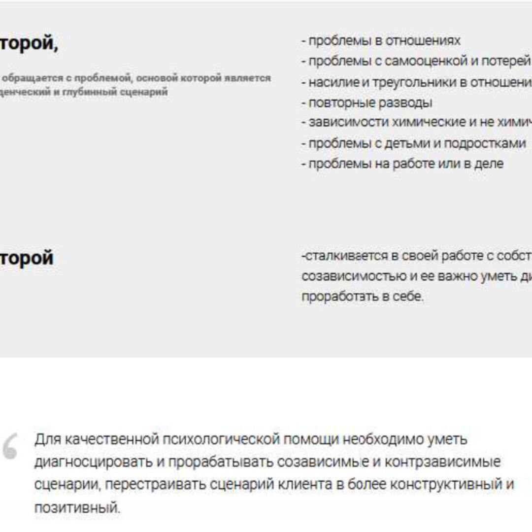 Входите в ступор при попытке понять запрос клиента, назначить оплату и следующую консультацию и не понимаете придет ли он на следующую? Вы готовы это исправить, что бы научиться эффективно работать с клиентами? У вас будет пошаговый план первичной психологической консультации и интеллект карта,
