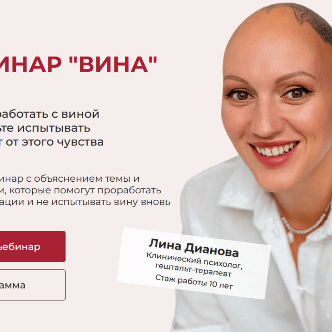 ЛИНА ДИАНОВА Вебинар «Внутренний бомж» Профессиональные направления: - 2011г, Алтайский государственный университет, специальность «Клинический психолог»; - 2012г, Московский институт гештальт и психодрамы, специальность «Гештальт терапевт»; - 2016г, Московский институт гештальт и психодрамы,