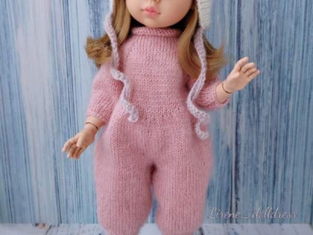 о этому описанию вы сможете связать комплект для куклы Паола Рейна ростом 32-34 см (или аналогичной по телосложению), состоящий из платья с разрезом и котошапочки бини без завязок. Платье с застёжкой на пуговицы на спинке вяжется вкруговую на пяти спицах. Рукав сшивается крючком. Шапочка вяжется на
