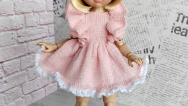 По этому описанию вы сможете связать ажурное распашное платьице для куклы с застежкой на пуговицы на спинке. Платье вяжется безотрывно от начала до конца, на двух спицах поворотными рядами. Платье вяжется на спицах №1.5-1.7 + крючок Пряжа: Alize «Angora Gold» (100 г 550 м) или аналогичная,