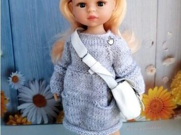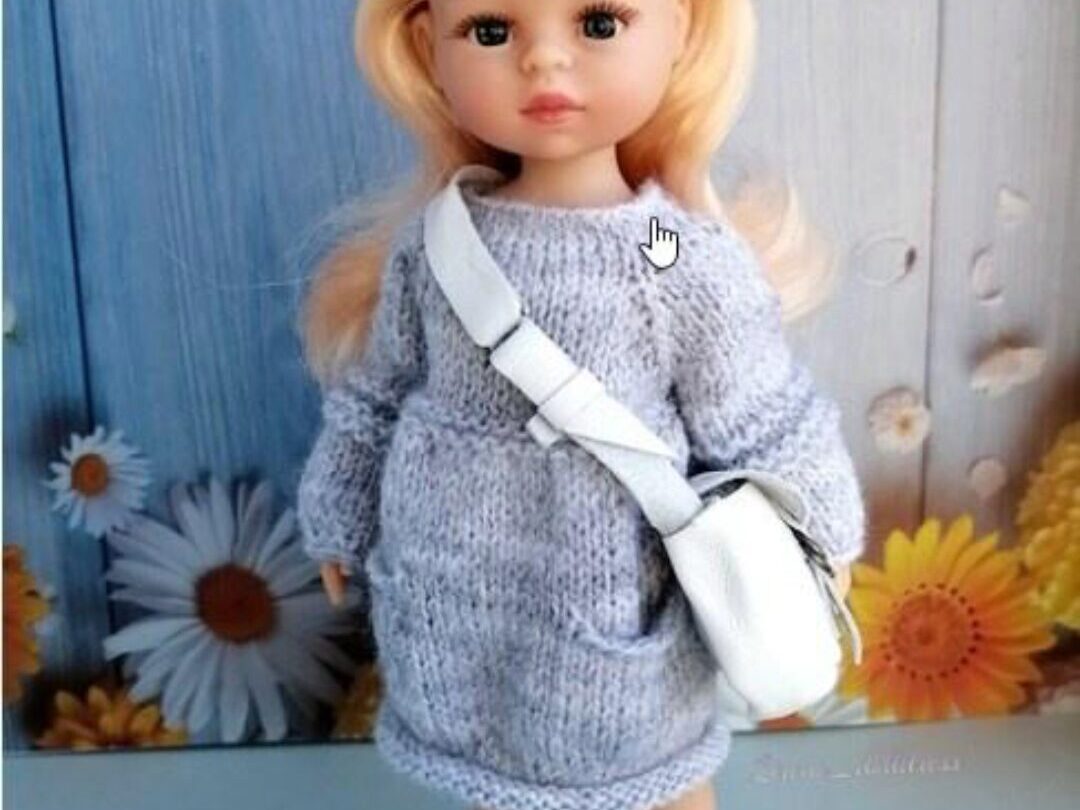 Описание вязания платья для кукол ростом 20-23 см спицами. Модель подходит для кукол Паола Рейна мини 21 см, Крузелингс, Монст и других аналогичных. Распашное платье вяжется на двух спицах №1.7-2 Плотность вязания (по лицевой глади): Полотно 15 петель + 2 кром. = 4,2 см в ширину МК в PDF файле на 6