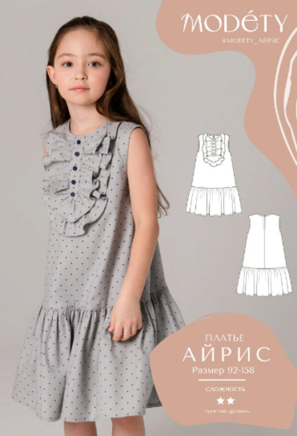 - Выкройку можно приобрести как в одном размере, так и размерными диапазонами (92-122, 110-140, 128-158).