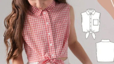 ОПИСАНИЕ МОДЕЛИ Топ Топ умеренного объема, укороченный. Горловины круглая, обработана бейкой, которая переходит в завязки на спинке. Рукав короткий, покроя реглан, имеет расширение к низу. По низу рукава вставлена эластичная тесьма для сборки. На детали спинки средний шов и разрез. Низ изделия