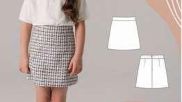 Материалы: ткань, дублерин плотностью 30-40 гр/м² — 0,5м для размера 92-116, 0,6м для размеров 122-158, клеевая кромка шириной 10-12мм — 0,3м для размеров 92-158, 0,4м для размеров 128-158, эластичная тесьма-резинка шириной 30мм – 0,3м для всех размеров, тесьма молния потайная неразъемная – 20см для всех размеров, нитки в тон - 5 катушек.