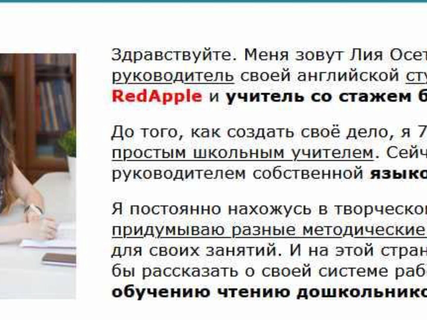 Отзывы о курсе «Red Apple's ABC - курс по чтению на английском языке для дошкольников» от Лии Осетровой
