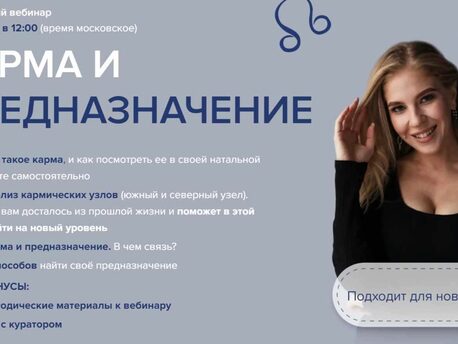 Программа: Модуль № 1. «Диагностика Кармы Здоровья Что будет в модуле: 1. Глубокое понимание структуры кармы 3-х уровней в 4-х направлениях жизни: - здоровье; - деньги; - отношения; - предназначение. (О том, как соединить карму из предыдущих воплощений, карму по роду и наработанную в этом