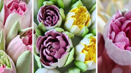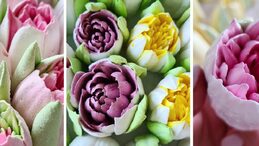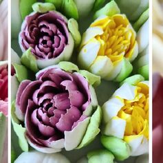 1. Видеоурок «Махровые зефирные тюльпаны» и упаковка в корейской технике. Тюльпаны как настоящие.