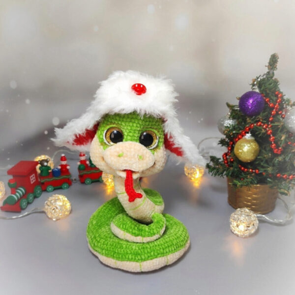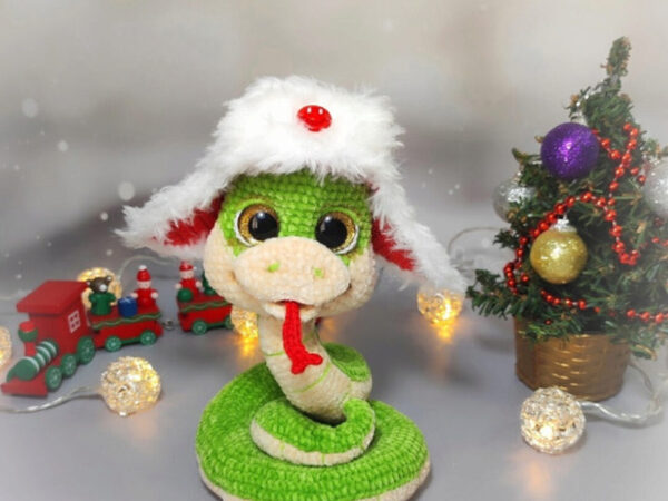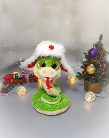 При использовании указанных материалов размер змейки в высоту - 13-15 см в зависимости от вытянутости шеи.