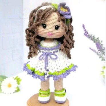 В МК выходит описание цельносвязаной куколки, трусики, платье, фартук, бантики, туфельки, портфель, звонок-колокольчик. Рост 24-25 см.