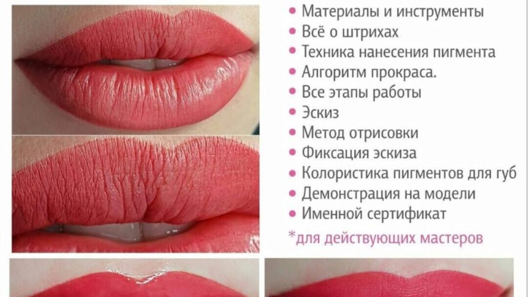 Онлайн мастер класс самых востребованных техник ПМ губ Акварельная техника . Омбре. 3D Effects НИКАКИХ СЕКРЕТОВ и пустой информации! Я поделюсь всем своим опытом и расскажу все технические и практические секреты работы от А до Я: Аппараты Иглы Колористика Кожа Правильный штрих, угол и растяжка