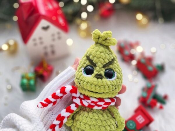 Игрушка из этой пряжи получается примерно 13см в зависимости от качества пряжи, номера крючка и плотности вязания.