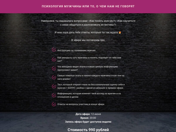 Отзывы о курсе Психология мужчины или то, о чем нам не говорят (makktina)