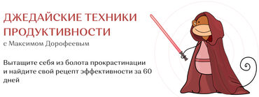 [Udemy] Джедайские техники (а не какой-то там тайм-менеджмент) От Максима Дорофеева автора книг «Джедайские техники» и «Путь джедая» Чему вы научитесь: Построить свою собственную методику повышения продуктивности Требования Самое главное - вам потребуется четкий ответ на вопрос: «Зачем вам это